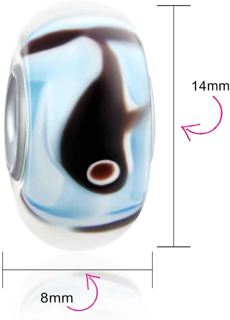 La bellezza di questo incantevole ciondolo balena in vetro di Murano risiede anche nella sua straordinaria versatilità. Progettato con una dimensione del foro non filettato di circa 4,8-5 mm, si adatta perfettamente a numerosi brand di bracciali a tema europeo come Pandora, Biagi, Troll, Chamilia, Persona, Nina Queen, Kay's Charmed Memories e molti altri ancora. La sua compatibilità si estende anche a collane e bracciali con diametro di 3 mm o inferiore, offrendovi infinite possibilità di personalizzazione. Immaginate di creare un bracciale completamente a tema nautico, dove questa balena blu in vetro di Murano diventa la protagonista di una storia marina personale, accompagnata da altre perline che richiamano il mondo dell'oceano. Le tonalità del blu del vetro di Murano si fondono armoniosamente con l'argento sterling .925, creando un contrasto elegante che cattura la luce in modo unico. Che siate alla ricerca di un accessorio per completare il vostro look quotidiano o desideriate un elemento distintivo per un'occasione speciale, questo ciondolo si adatta ad ogni situazione con naturale eleganza. La sua versatilità lo rende perfetto sia per un abbigliamento casual che per un outfit più formale, aggiungendo sempre quel tocco di originalità e raffinatezza che vi farà distinguere. Inoltre, la robustezza dell'argento sterling .925 e la qualità del vetro di Murano garantiscono che questo gioiello mantenga la sua bellezza nel tempo, resistendo all'usura quotidiana senza perdere la sua brillantezza originale.
